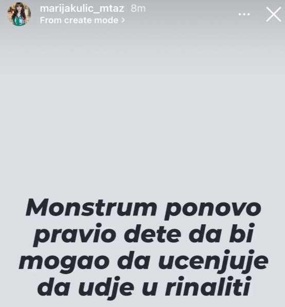 -Monstrum ponovo pravio dete da bi mogao da ucenjuje da uđe u rijaliti – napisala je vidno besna Marija.
