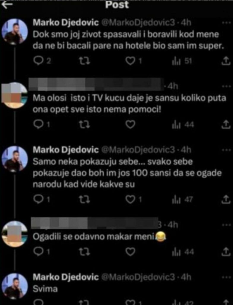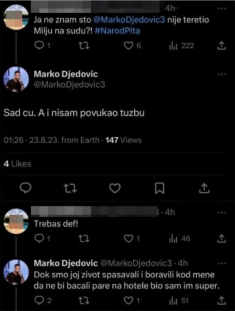 – Ja ne znam što Marko Đedović nije teretio Milju na sudu? – pitao je jedan korisnik Marka.