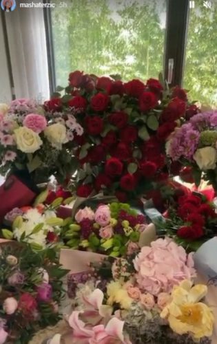 Jutro posle proslave, Maša je sa pratiocima na Instagramu podelila i snimak na kom se vidi pun sto cveća i ruža koje je dobila.