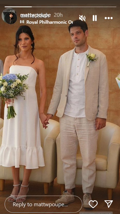 Mateja je na Instagram storiju podelio fotografiju sa svadbe. Nema sumnje da su se mladenci sjajno obukli za njihov srećan dan, a šarma im nikako ne nedostaje, kao ni čarolije u očima.