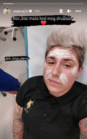 – Boc, boc, malo kod mog druškana – napisala je Jovana na Instagram priči na kojoj vidimo kako joj je namazana verovatno anestezija, koja će sprečiti bol od uboda, na pojedinim mestima na licu.