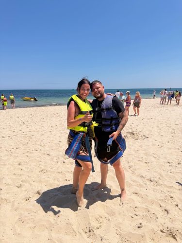 „I napokon smo na našem prvom zajedničkom letovanju, našem medenom mesecu. Oduvek sam sanjala da pored sebe imam muškarca koji će da me tretira kao princezu. A sada živim svoje snove! Hvala ti što postojiš, što si me razmazio kao malo dete. Na svemu hvala što tek dolazi… zauvek si moj, zauvek sam tvoja. „