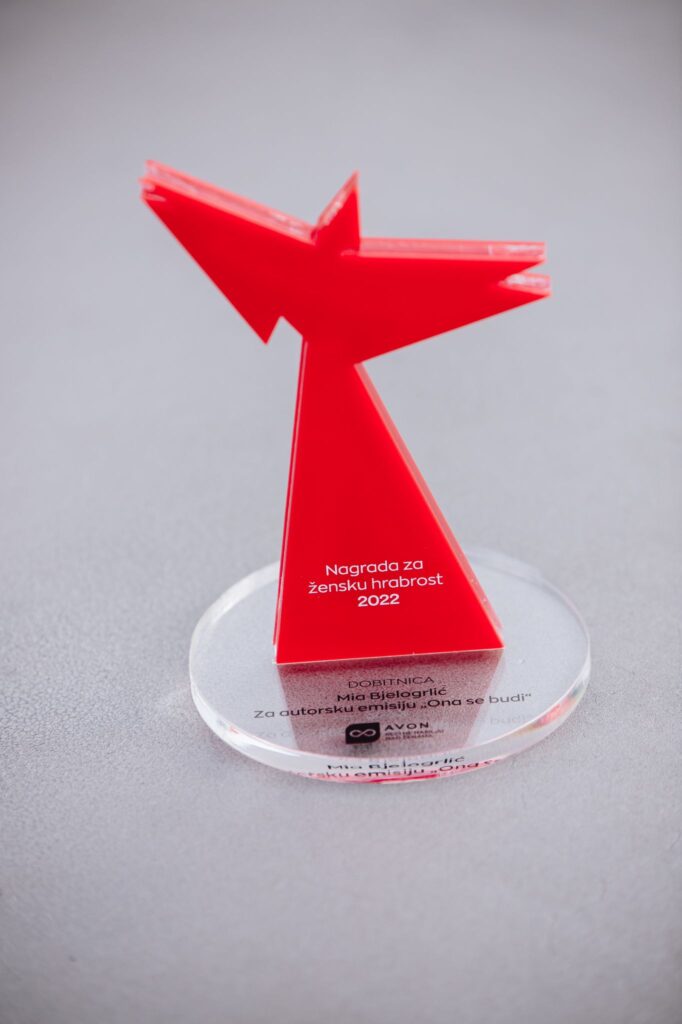 Povodom globalne kampanje “16 dana aktivizma”, kompanija Avon je u okviru akcije Reci NE nasilju nad ženama dodelila Nagradu za žensku hrabrost Mii Bjelogrlić, autorki serijala „Ona se budi”.