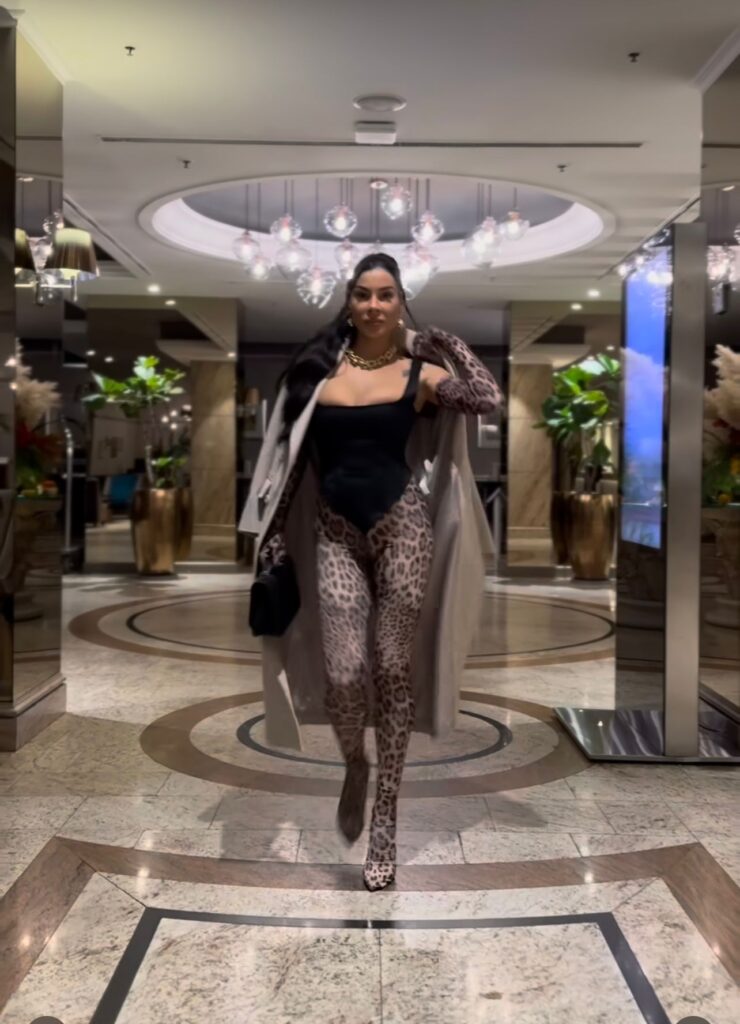 Mia je prošetala u tigrasto-crnim helankama i topu, njena izvajana figura je došla do izražaja.