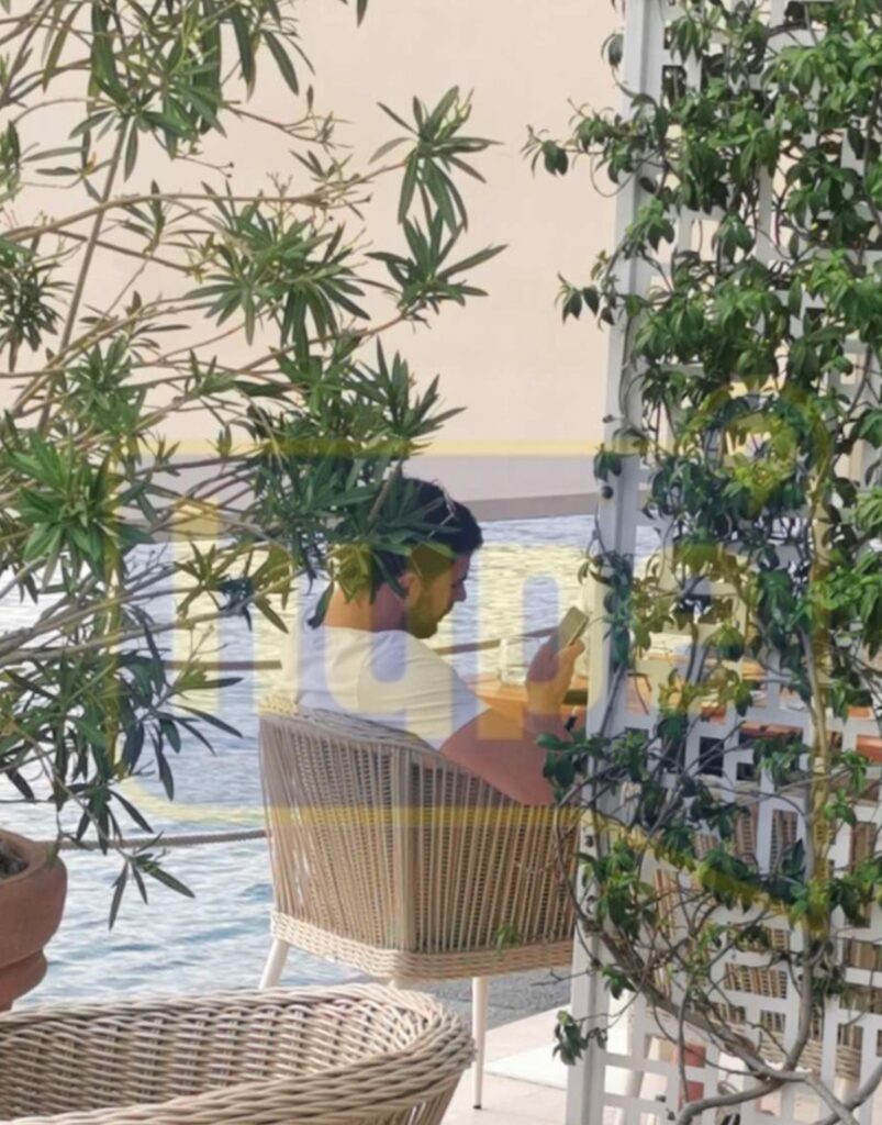 Marić je nosio belu majicu i šorts, a na glavi je imao skupocene naočare. On se sa nekim dopisivao, sedeo je u ćošku uz samu obalu mora.
