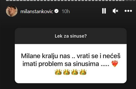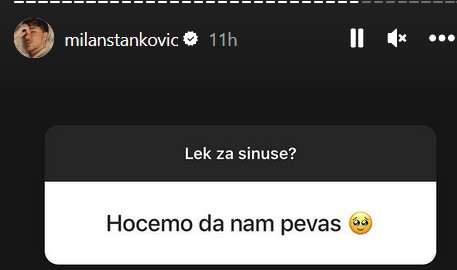 Milan Stanković otkrio je da ima problem sa sinusima, te je zamolio fanove da mu pomognu. Iako je i dobio par odgovora putem storija, kako može zalečiti/izlečiti sinuse, većina komentara svodila se na jedno – kad se vraćaš na muzičko tlo?