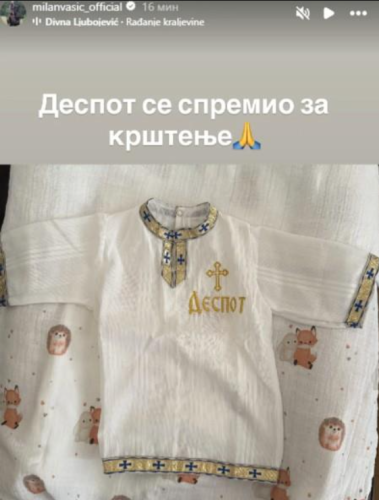 Glumac je prethodno objavio fotografiju i odore u kojoj se maleni Despot krstio, a koja je posebno vezena baš za ovu priliku. Vasiću je veoma važno da se njegov sin poveže sa tradicijom i ljubavni koju i on sam oseća prema Kosovu i Metohiji odakle potiče.