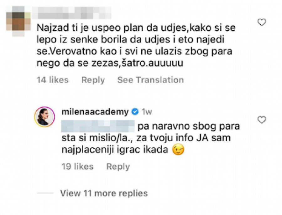 – Najzad ti je uspeo plan da uđeš, kako se lepo iz senke borila i eto, najedi se. Verovatno kao i svi ne ulaziš zbog para nego da se zezaš, auuu – glasio se je jedan od komentara, a temperamentna Milena se nadovezala: