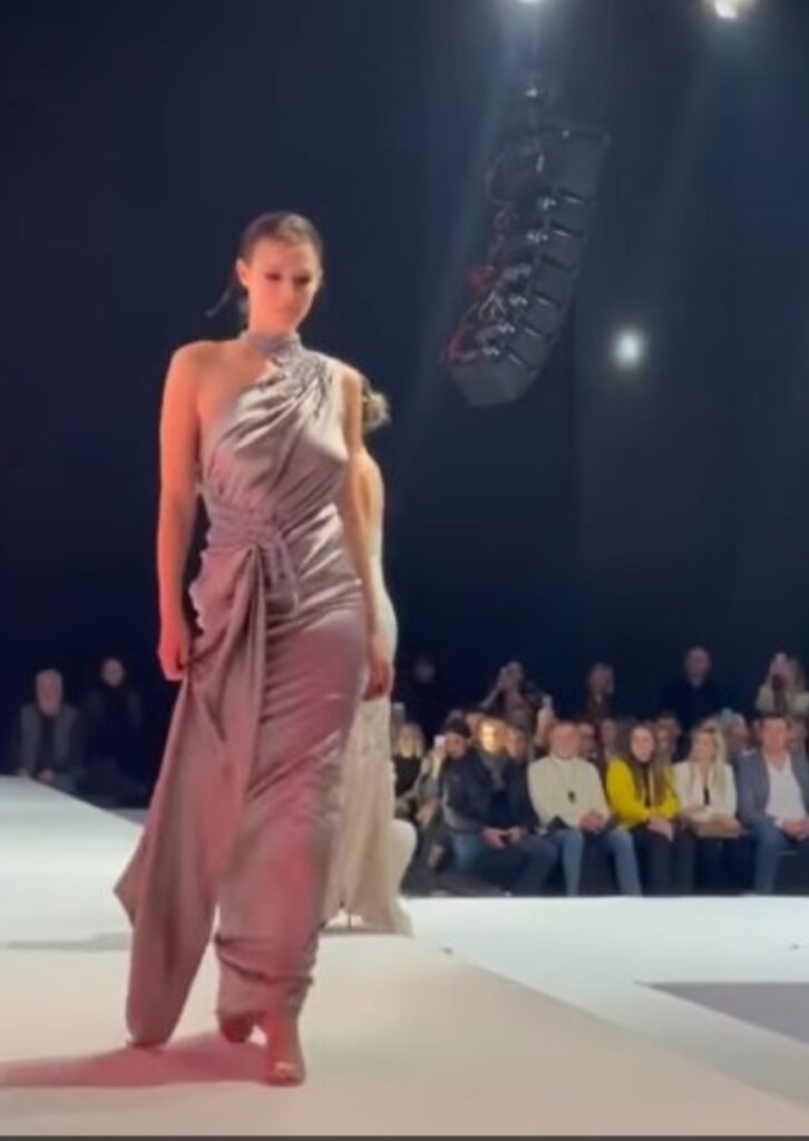 Ova odevna kombinacija podrazumevala je i gola leđa, dok je Milena sve vreme bila odlično raspoložena.