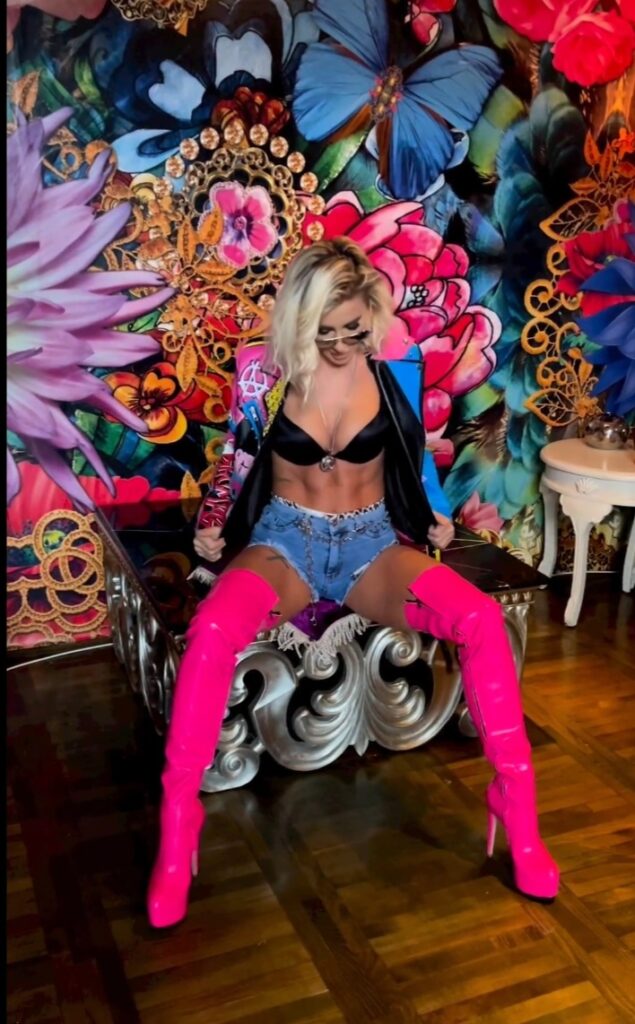 Ovaj put nije bila u tangama, ali zato je ispod jakne imala samo brushalter, dok su njeni savršeni trbušnjaci došli do izražaja. Celu kombinaciju upotpunila je kratkim teksas šortsem, i dugim čizmama koje je navukla do pola golih butina, a kada je sela, raširila noge i razgrnula jaknu mnogi su „popadali“.