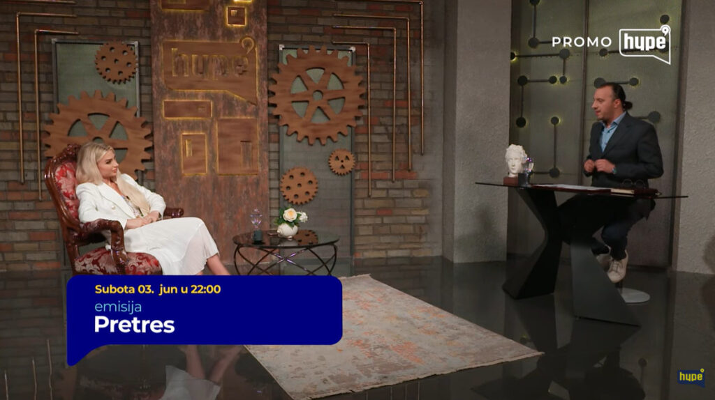 U petak, 03.juna od 22h na Hype televiziji u emisiji „Pretres“ autora i voditelja Stefana Usiljanina gost će biti popularna bivša rijaliti učesnica Milica Kemez.