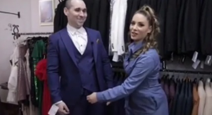 Dok je probao odelo izašao je da ga svi vide, ali voditeljki je zapao za oko šlic koji mu je bio otkopčan, pa se ponudila da mu pomogne.