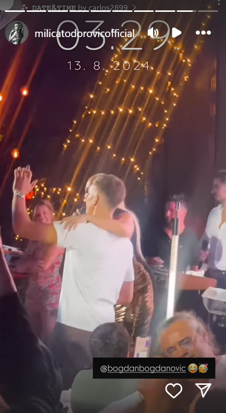Pevala je u jednom klubu pesmu „Svirajte samo noćas samo za nju“ kada joj se na bini pridružio i košarkaš Bogdan Bogdanović. On se istopio uz omiljenu pesmu Tome Zdravkovića, a Milica ga je zagrlila.