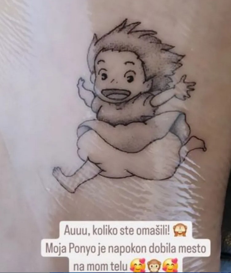 Milica je želela da osveži staru tetovažu, a zatim i uradi čak tri nove. Na domalom prstu iste ruke uradila zvezdicu, zatim popularnog lika iz animiranog filma Ponyo na nozi, kao i sunce i talas mora na jednom boku. Pevačica nije krila koliko je srećna zbog ovog trenutka o kome je dugo razmišljala, a pratioci su se oduševili koliko su slatke nove sličice na njenom telu koje je uradila sa stilom.