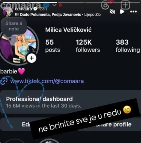 Naime, na Instagramu je podelila podatak da je tokom jula njen profil zabeležio čak 15,6 miliona poseta, uz šaljivu poruku: „Ne brinite, sve je u redu.“ Njena harizma, iskrenost i nesalomiv duh i dalje osvajaju srca širom regiona.