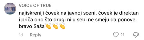 Osim šokantnih detalja, Saša Mirković se ne libi da odgovori na komentare koji nekada po prirodi i nisu pozitivni: