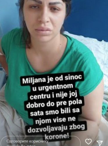 „Miljana je od sinić u Urgentnom centru i nije dobro. Do pre pola sata smo bili sa njom, više ne dozvoljavaju zbog korone“, napisala je Marija na Instagramu.