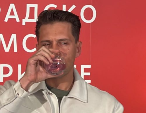 Glumac je verovatno bio po malo neispavan, pa je neko vreme sedeo i gledao u pod, a onda odlučio da malo popije vode i dođe k sebi, kako bi mogao da isprati celu konferenciju do kraja. Po podočnjacima bi se reklo da mu ove rane konferencije i okupljanja baš i ne prijaju.