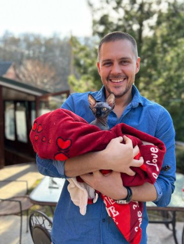 U pitanju je takozvana ćelava mačka, rasa koja je veoma retka u svetu a cena ovakvog jednog kućnog ljubimca je paprena. Na pomenutoj slici Miloš je vidno nasmejan, pomalo zbunjen a u naručju drži malu macu umotanu u peškir.