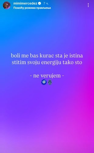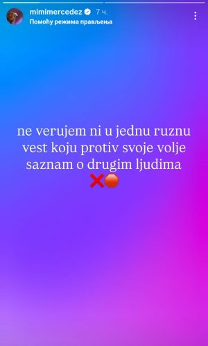 Mimi je još jednom pokazala da uvek govori bez filtera, kao i da je uvek prisutna u svetu u kom živi. Reperka nikada nije krila da se isključivo drži svog mišljenja i da joj priče, navodi ili glasine nisu uopšte interesantni.