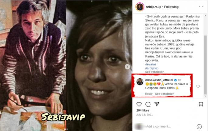 Pevačica Mina Kostić reagovala je na objavu jedne popularne Instagram stranice i po svemu sudeći, nenamerno, upokojila glumicu Evu Ras.