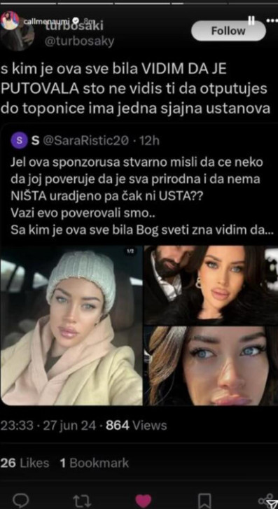 – I evo, sad mi prijavljuju profil jer sam okačila ovo. Dobro, makar ih je sramota. Šta se radi u ovim situacijama? – zatražila je savet Mina i dodala: