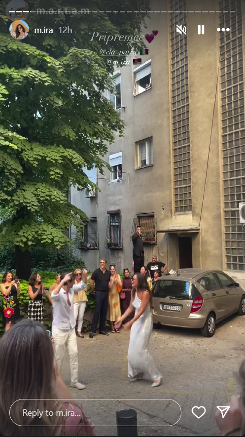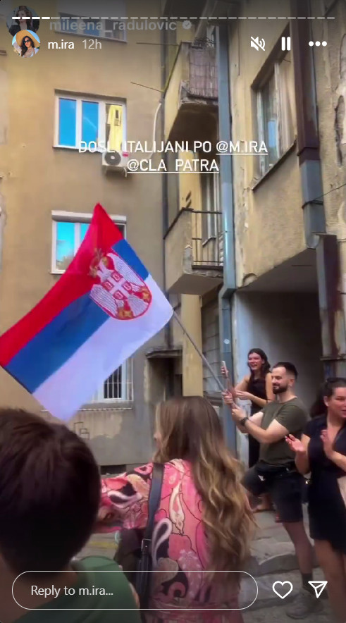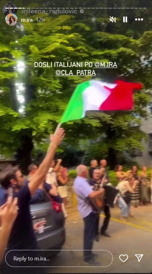Nakon što je Mira izašla iz zgrade, par je zaplesao uz pesmu „L’italiano“, dok su zastave Italije i Srbije vijorile. Na kraju, usledio je poljubac.