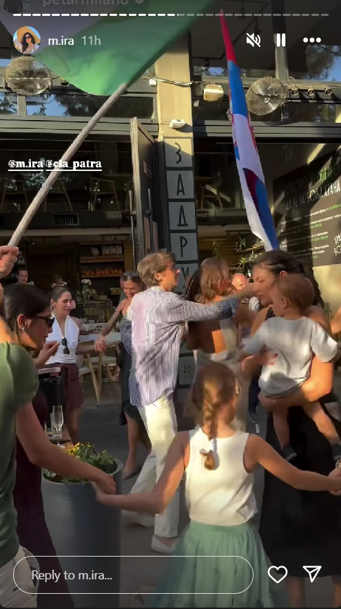Par je potom otišao u centar grada gde su zajedno igrali srpsko kolo, ponovo sa zastavama koje su se vijorile. Mlada i mladoženja su tokom celog događaja blistali od sreće.