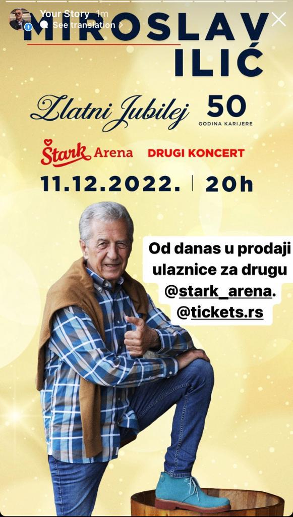 Više od mesec dana pre samog događaja, koncert Miroslava Ilića u Štark Areni u Beogradu 10. decembra je rasprodat, a Hype produkcija na čelu sa Sašom Mirkovićem najavila je da će publika moći da uživa u hitovima legendarnog „slavuja iz Mrčajevaca“ i 11. decembra na istom mestu!