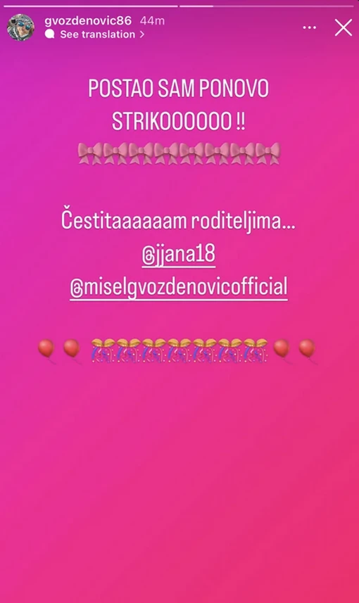 Ponovo sam postao striko! Čestitm roditeljima – napisao je Saša.