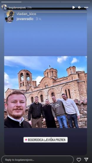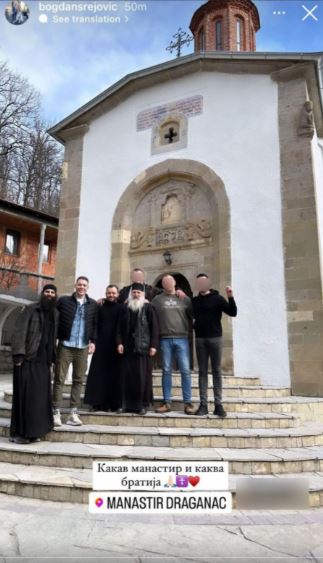 U muškom društvu, Bogdan je posetio nekoliko manastira, deleći sa svojim pratiocima na društvenim mrežama predivne slike sa putovanja. Prvo su obišli manastir Svetih Arhangela, zatim crkvu Bogorodice Ljeviške, manastir Draganac, a potom i Gračanicu.