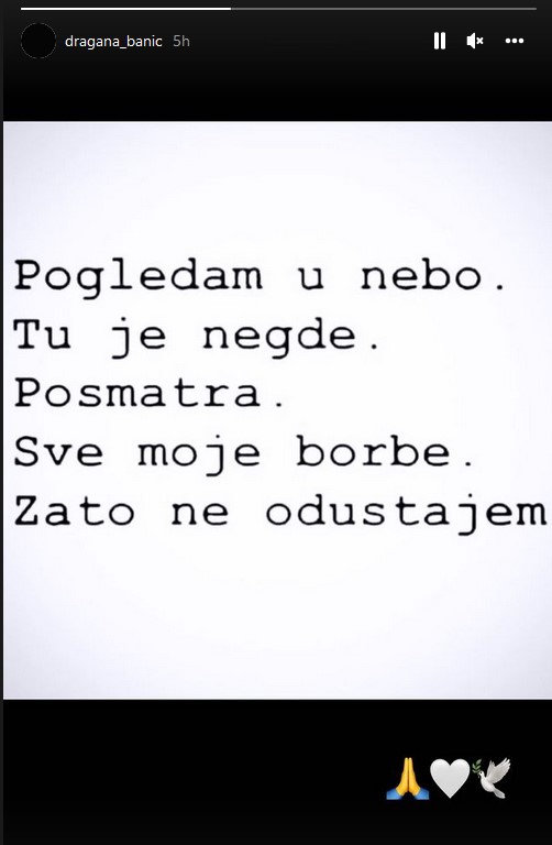 Pogledam u nebo. Tu je negde. Posmatra. Sve moje borbe. Zato ne odustajem – objavila je fotografiju misica na društvenoj mreži Instragram.