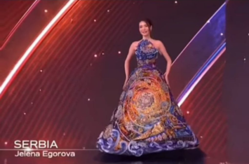 Tokom predstavljanja u nacionalnim kostimima, devojka koja nosi lentu Srbije pojavila se u stilizovanoj haljini sa krugovima i brojevima na grudima, motivima koji se zapravo nalaze u tradicionalnoj mongolskoj nošnji.