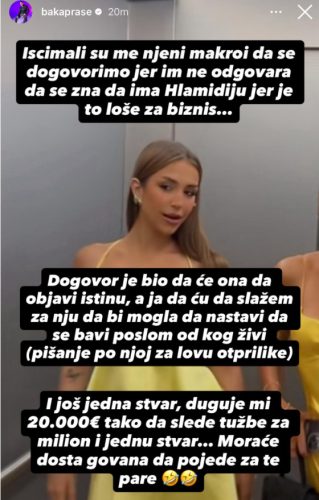 – Pošto je Hlami Dia počela opet da k*nja po TikToku, hoćete da kažem sve šta je bilo i sve o njoj? Ovaj put bez laži – napisao je Baka Prase.