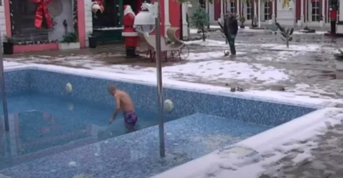 I ovog jutra Lepog Miću nisu omele niske temperature i sneg da se baci u bezen, i otpliva nekoliko krugova.