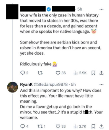 – Tvoja žena je jedini slučaj u istoriji čovečanstva koja se preselila u Ameriku u svojim tridesetim, bila tamo manje od jedne decenije i dobila naglasak kada govori maternji jezik. Urnebesno i fejk – napisala mu je jedna tviterašica, što je muža naše glumice iznerviralo.