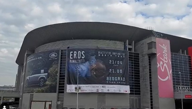 Saša Mirković vlasnik “Hajp produkcije” na Instagramu je objavio video postavljanja postera za najavu koncerta Ramacotija i napisao: „Vidimo se u @stark_arena 21.4.2023 na spektaklu i koncertu @ramazzotti_eros !!!“