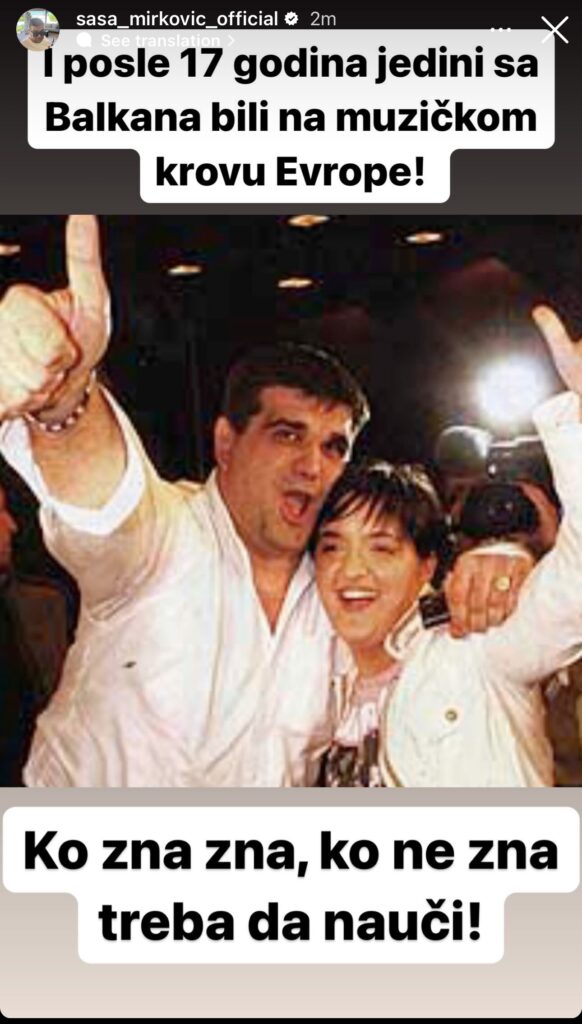 “I posle 17 godina jedini sa Balkana bili na muzickom krovu Evrope! Ko zna zna, ko ne zna treba da nauci!” napisao je Mirković i dodao: