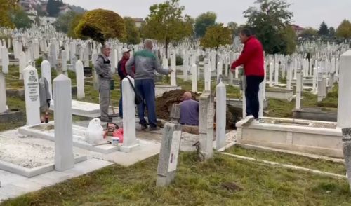 Kako je najavljeno sahrana će biti u 15 časova, ali na gradskom groblju sve vrvi od radnika. Jedni kopaju raku, drugi uređuju prilaz groblju, Neki donose, neki rasklanjaju kako bi sve bilo cakum pakun, jer se očekuje veliki broj ljudi.