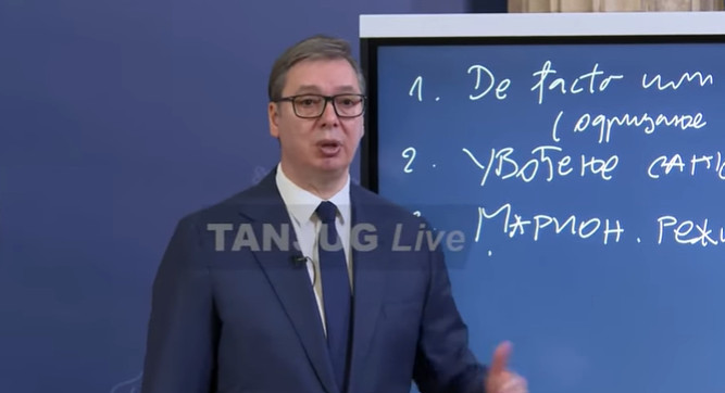 – Stalna demonizacija Srbije zbog tobožnjih nedemokratskih odnosno, autokratskih tendencija. Drugo je čuvena Banjska – i to je postalo opšte mesto iz dva razloga. Uvek ćemo to da vadimo i da objašnjavamo kako je Srbija užasan primer. Ljudi, jel ste ozbiljni, ja sam mislio da je to malo ozbiljnije – rekao je predsednik.