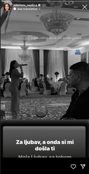 Pevačica je objavila fotografiju sa jednog slavlja na kome je pevala, a na kojoj se vidi kako je Damir ponosno gleda.