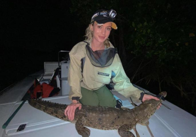 -„Takođe se bavim i drugim stvarima pored posla, uključujući lov na pijune, ronjenje s ajkulama i označavanje različitih vrsta poput aligatora“, rekla je.