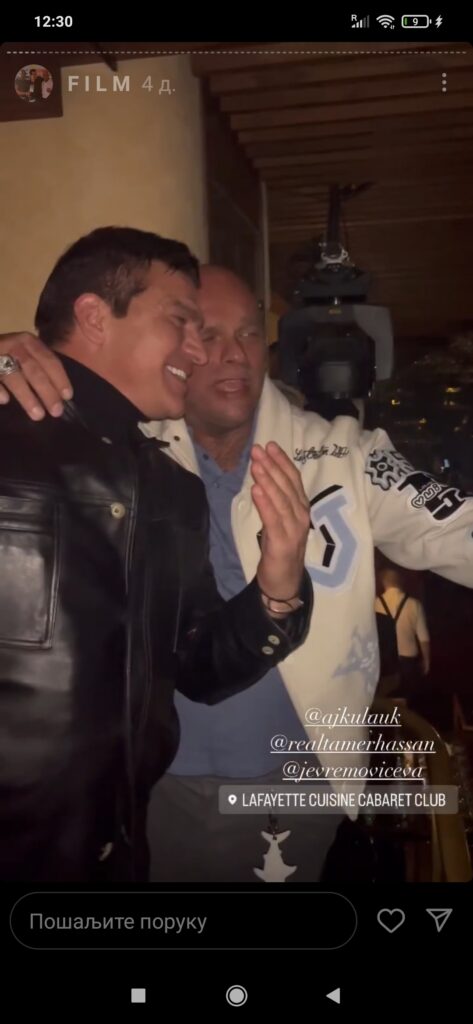 Goranu Ajkuli na ovo putovanje se pridružio i glumac Tamer Hasan, koji je igrao u filmovima „Betmen počinje“, „Pogrešno skretanje 3: Levo od smrti“ i „Dvostruka igra“. Tameru je pripala jedna od glavnih uloga, tumačiće lik najboljeg Ajkulinog prijatelja u filmu koji je počeo da se snima pod nazivom „Ajkula sa ljudskim licem“.