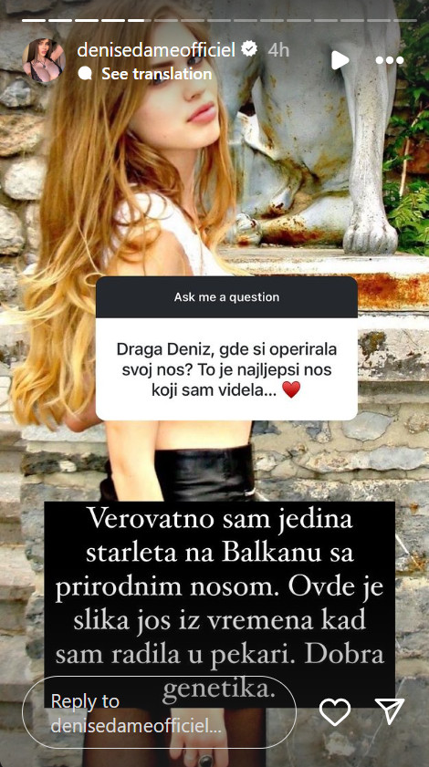Dobila je i pitanje gde je operisala nos, a ona je rekla kako to nije ni radila.
