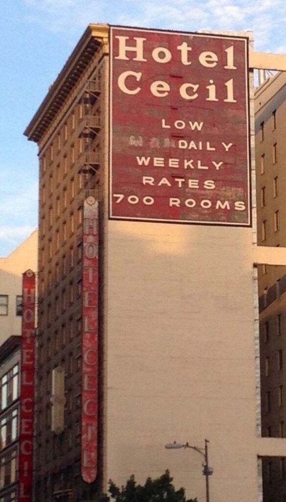 Iako je zgrada sa 14 spratova i 700 soba proglašena kulturnim dobrom Los Anđelesa 2017. godine, hotel Sesil se odomaćio kao mesto koje je privlačilo serijske ubice. Ričard Ramirez, poznat kao „Noćni Vrebač“, harao je Los Anđelesom osamdesetih godina, ubivši 13 ljudi pre nego što je uhvaćen – boravio je u ovom hotelu.