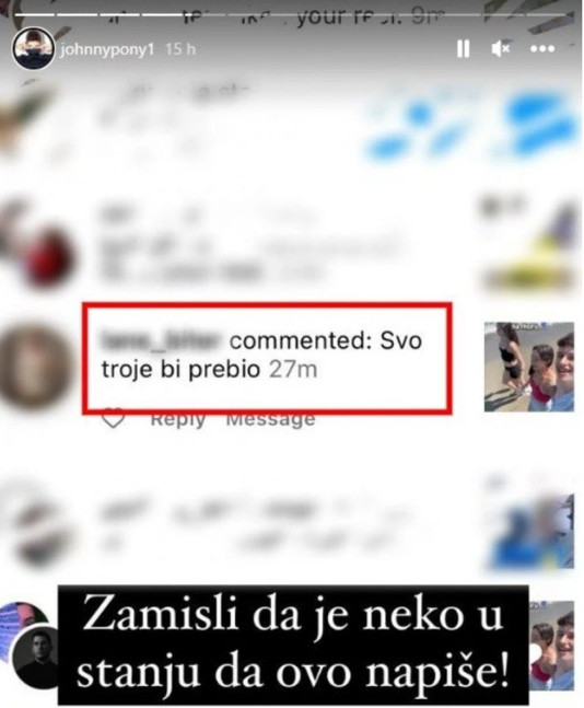Naime, nepoznata osoba ispod snimka ostavila je otvorenu pretnju, nakon čega se tiktoker oglasio na storiju. Poznato je da ovo nije prvi put da se Džoniju dešavaju ovakve situacije, pa je odlučio da javno iznese sve šta mu se dešava: