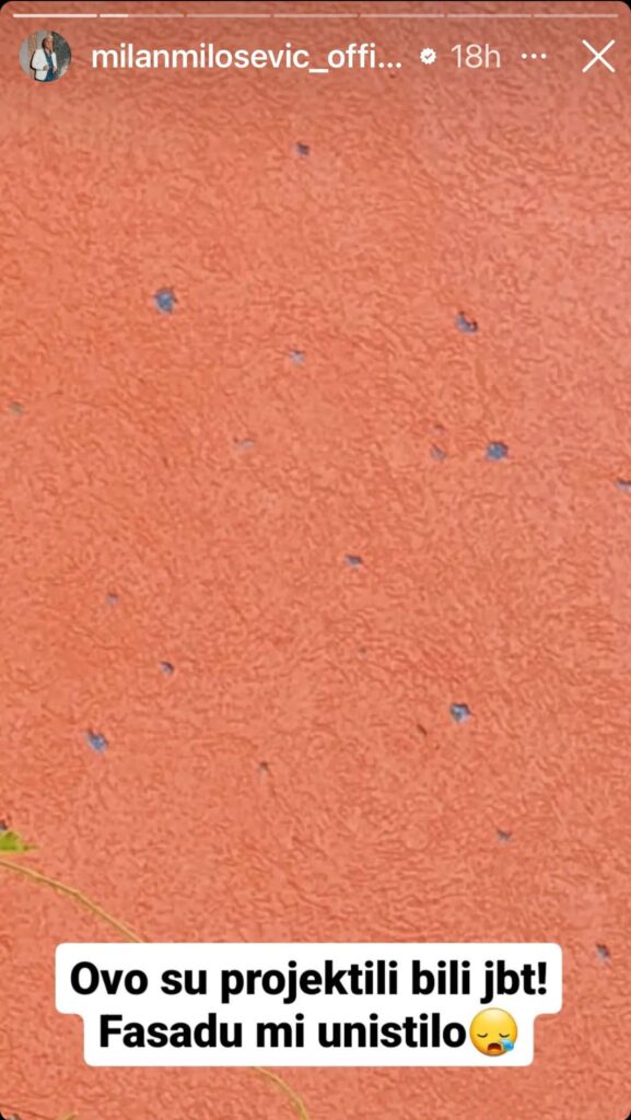 – Ovo su projektili bili j*t! Fasadu mi uništilo! – napisao je Milan na svom Instagram profilu.