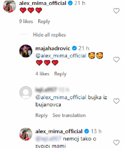 Nakon što je pročitala uvredu upućenu njoj, Aleksandra je hitno morala da odreaguje kako bi se suprotstavila ovom napadu. Mnogi njeni pratioci su je savetovali da prijavi ovaj slučaj policiji kako bi zaštitila svoje bezbednost i integritet.