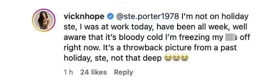 Vik Houp je primorana da uzvrati udarac hejterima nakon što je kritikovana zbog „pokazivanja glamuroznog načina života tokom zime“ nakon što je podelila fotografiju s odmora na kojoj je bez gornjeg dela odeće.