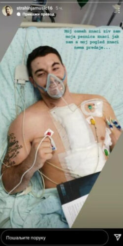 On je zadobio ozbiljne povrede srca i pluća i hitno je operisan. Sada se na Instagramu oglasio i pokazao da koliko je jak i istrajan u svojoj borbi. Strahinja je objavio fotografiju iz bolničkog kreveta, dok osmeh nije skidao sa lica.